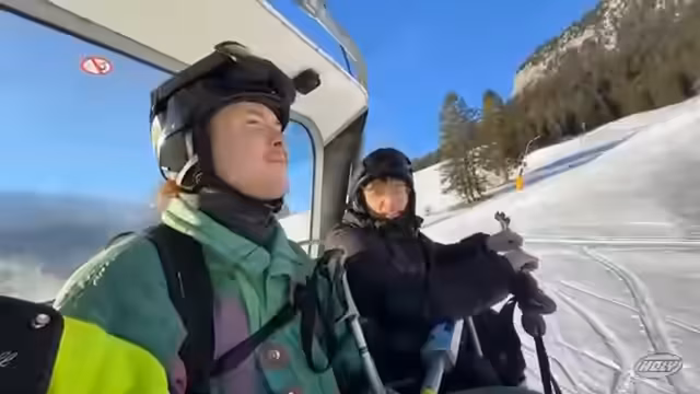 Begegnung mit Zuschauern im Skilift und Diskussion über schwarze Pisten