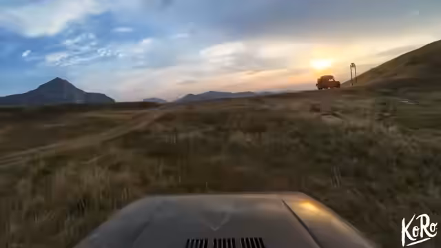 06:20:50Während der Fahrt wird die Drone wieder zum Einsatz gebracht, um die spektakuläre Berglandschaft einzufangen. Die Kamera wird im Cinema-Modus betrieben, um epische Sequenzen zu drehen. Begleitet von epischer Orchestermusik, werden spektakuläre Aufnahmen von der Landschaft und den Fahrzeugen gemacht, während das Sonnenlicht die Szenerie dramatisch ausleuchtet.