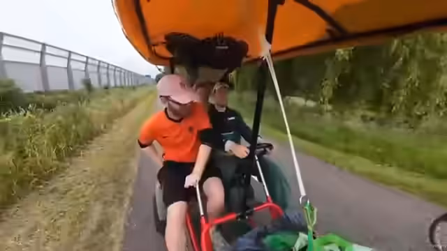00:02:53Der finale Tag der 300-Km-Kettcar-Tour beginnt mit einer kleineren Panne, als der Streamer versehentlich die falsche Straßenreinigt. Er präsentiert daraufhin sein Fahrrad, das für die Reise umgerüstet wurde, mit diversen Halterungen für Drohne, Handy und Navigation. Gemeinsam mit Begleitfahrzeugen wird die Windschatten-Nutzung erwähnt, um die letzten Kilometer möglichst effizient zurückzulegen. Der Fokus liegt auf der finalen Etappe von 26 Kilometern nach Rotterdam.