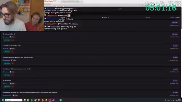 01:18:05Der Stream enthält eine verdeckte Herausforderung, bei der Kodiak von Chat-Anfragen angewiesen wurde, Magda dreimal mit dem Namen 'Marion' anzusprechen, ohne dass sie es bemerkt. Es wird erwähnt, dass sie dabei nicht ganz erfolgreich war, was einige Chat-Mitglieder skeptisch beobachteten. Nebenher werden verschiedene Spendenziele genannt, darunter das Rasieren von Kodiaks Bart für 350 Subs, eine mögliche Glatze für 1000 Subs und die Herausforderung, ein extrem scharfes Gericht zu essen. Kodiak erzählt von einer persönlichen Vorerfahrung mit scharfem Essen, bei der er in Indonesien bewusstlos wurde, und steht dem Essen scharfer Gerichte daher sehr skeptisch gegenüber.