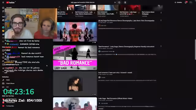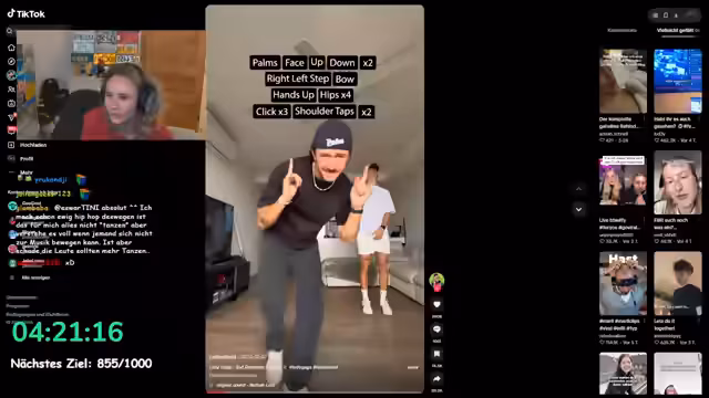 02:15:27Der Stream beginnt mit der Suche nach einem passenden Tanz-Tutorial. Es wird ein 47-minütiger Dance Workout-Videoclip vorgeschlagen, der als zu lang und nicht als geeignetes Tutorial abgelehnt wird. Stattdessen wird der Fokus auf einen kurzen Clip zu Lady Gagas 'Bad Romance' gelegt, der jedoch ebenfalls nicht ideal erscheint. Der Streamer ist frustriert von der Suche und bemerkt, dass er mit der TikTok-App und den Einstellungen, insbesondere dem automatischen Scrollen, völlig überfordert ist. Auch die Synchronisation des Sounds und der Videowiedergabe bereitet erhebliche technische Schwierigkeiten.