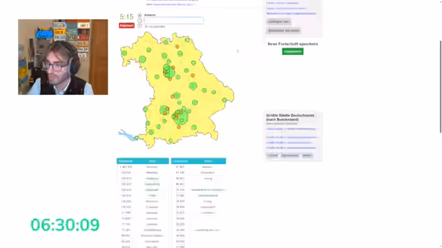 07:04:54Der Streamer startet ein Quiz über deutsche Städte, wobei es verschiedene Kategorien gibt, wie Hauptstädte oder Städte mit besonderen Eigenschaften. Zuschauer sollen Städte erkennen, die in der DDR lagen, oder wichtige Städte wie Berlin, Bonn, Heidelberg oder Frankfurt identifizieren. Es gibt einige Verwirrung bei der Zuordnung, wobei der Streamer gelegentlich Fehler eingesteht. Die Diskussionen im Chat sind lebhaft und enthalten viele nützliche Hinweise, was zu einem lehrreichen Erlebnis führt.