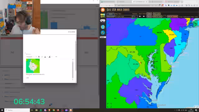 02:10:03Der Streamer plant, vorzustellen, wie er das Lernen von Area-Codes gestaltet. Er möchte zeigen, wie er die Karten bearbeitet und wie er sich mnemonische Hilfen erstellt. Er erklärt, dass er nicht alle Area-Codes eines Staates lernt, sondern nur die am häufigsten vorkommenden. Er beginnt mit Maryland und erklärt, wie er sich für die Area-Codes 410 und 443 Wörter wie 'Kathedrale' und 'Kackmeter' ausdenkt, um sie sich zu merken.