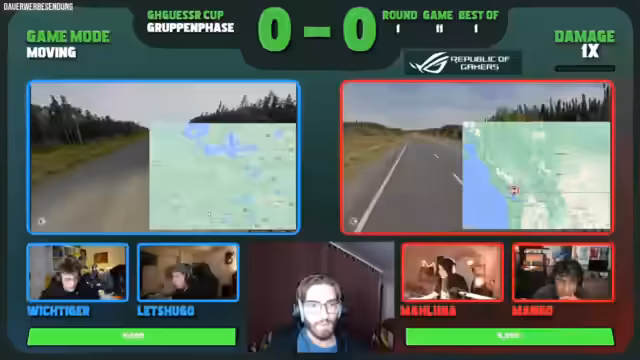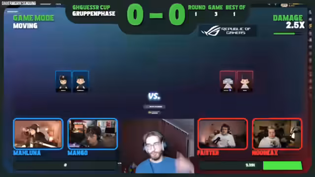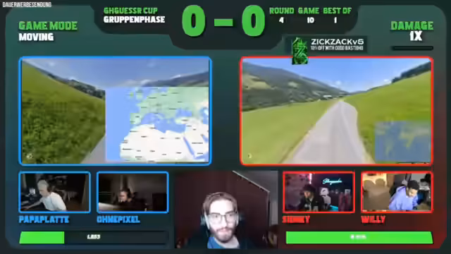 00:00:00Der Stream beginnt mit der Einrichtung einer Warteraum-Lobby für das bevorstehende GHGeoGuessr-Turnier. Der Streamer plant, zunächst einige Solo-Runden und Team-Duelle zu spielen, bis mehr Zuschauer anwesend sind. Ein angepinnter Link ermöglicht den einfachen Einstieg in die Team-Duelle. Gleichzeitig wird die Möglichkeit einer gemeinsamen „Watch Party“ für das Turnier im Chat diskutiert, bei der der Streamer das Turnier zusammen mit den Zuschauern anschauen würde. Es wird auch angekündigt, dass später im Stream ein gemeinsames Coaching mit Papaplatte stattfinden wird.