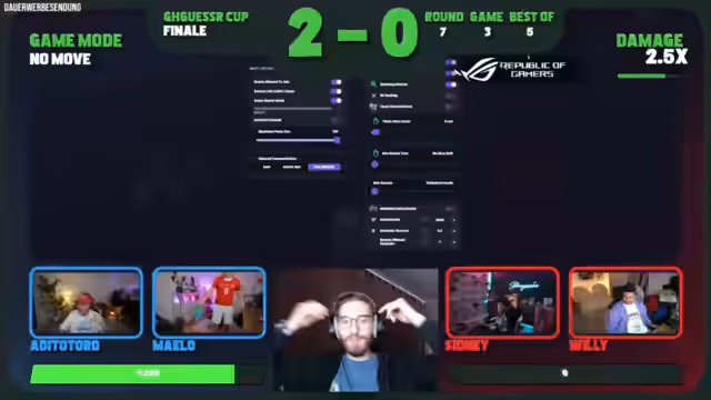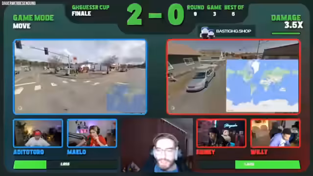 06:40:54Noriex findet den Ort Cosenza, doch Team Rot ist bereits näher am Ziel und sammelt Punkte durch einen Multiplikator. Trotz intensiver Bemühungen von Adi und Maelo gewinnt Team Rot die Runde. In der Folge wird das Finale zwischen Team Rot (Adi und Maedo) und Team Blau (Sydney und Willi) vorbereitet. Der Streamer hebt die hohen Fähigkeiten beider Teams hervor und gibt Sydney als den stärksten individuellen Spieler an, sieht aber auch Adi und Maelo als starke Einheit. Es ist ein Best-of-Five angesetzt.