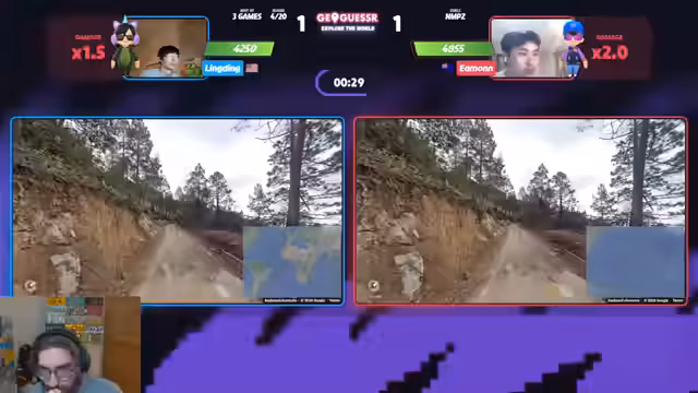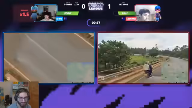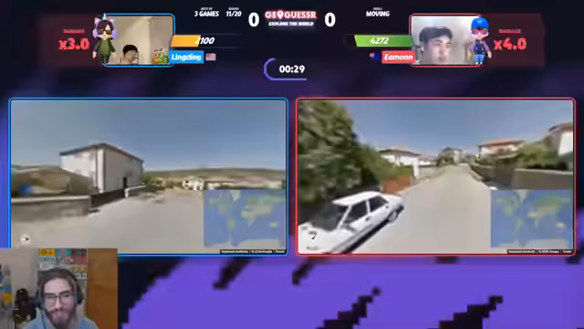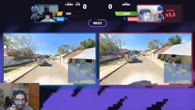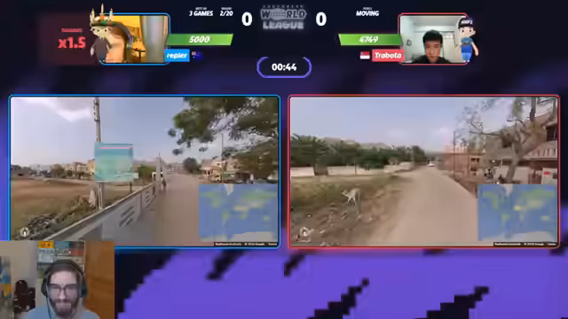 02:43:25Die Runde beginnt mit der Analyse von unklaren Schildern in Südamerika, darunter eine Debatte, ob es sich um Ecuador oder Kolumbien handelt. Kurze Zeit später geht es um Orte in Zentralamerika wie Panama und Costa Rica. Kirania macht einen starken 5K-Guess mit dem Melon Rigger, verliert aber durch einen Landwechsel viel Frostblitz-Schaden. Währenddessen identifiziert Spaghetti den Ort Durango in Mexiko anhand von gestreiften Autos, während ein anderer Spieler auf Sinaloa tippt, was zu einem engen Rennen führt. Der Streamer kommentiert, dass einige Spieler bestimmte Länder wie Deutschland oder Japan aufgrund ihrer Herkunft einen leichten Vorteil haben, bei Singapur jedoch nicht.