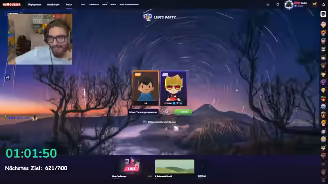 10:37:57Nachdem die Runde nicht gespielt wurde, entscheidet der Streamer aufgrund des Zuwachses an Zuschauern für einen Lobbywechsel. Es wird eine neue Lobby mit 20 Runden erstellt, wobei Geozeitbonus, Start HP und Tipps deaktiviert werden, um das Spiel zugänglicher zu machen. Obwohl es noch keine größeren Lobbys erlaubt, werden alle Interessierten eingeladen, teilzunehmen und ihr Können in der Geografie zu beweisen.