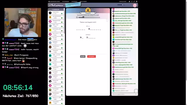 11:01:57Ein Zuschauer begrüßt den Streamer zum Subathon und wird mit einem eingefrorenen Bildschirm konfrontiert. Der Streamer nutzt die Gelegenheit, den aktuellen Stand des Subathons zu erwähnen und seine Verweildauer auf über 10 Stunden zu betonen. Für die Unterhaltung wird das Spiel 'What's the Music' gestartet, wobei die Teilnehmer nur einen Buchstaben des Titels erraten müssen, um eine gemischte Musikwahrnehmung zu schaffen.