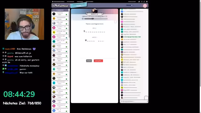12:28:51Die Musikrunde des Buchstaben 'S' ist geprägt von einer großen Vielfalt an Genres. Während der Streamer und einige Zuschauer bekannte und beliebte Titel wie 'Santiano' identifizieren, stoßen sie auch auf Songs, die sie nicht kennen, insbesondere aus dem Rock- und Metal-Bereich. Der Streamer, der selbst kein Rock-Fan ist, zeigt sich dennoch tolerant und betont, dass es immer wieder positive Lichtblicke im Chat gibt.