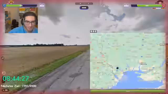 00:07:16Nachdem die technischen Probleme vorüber sind, beginnen die ersten 2v2-Runden im GeoGuessr Moving-Only-Modus. Die Spieler nutzen einen zufälligen Pan-Zoom-Startpunkt mit 50.000 HP und Individual Multis. Die Runden sind geprägt von intensiven Ortsbestimmungen, wobei die Spieler oft Kontinente und Landmassen erraten und daraufhin detailliert nach Hinweisen wie Schienen, Vegetation oder Bauwerken suchen. Es kommt zu mehreren schnellen Fehleinschätzungen und spannenden Mehrfach-Guesses.