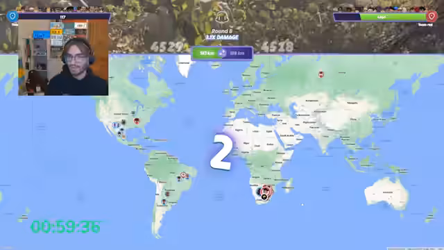 02:22:07Nach einer Runde entscheidet der Streamer, einen neuen, spaßigeren Spielmodus zu testen. Er startet eine 'Alle-gegen-mich'-Challenge, bei der er gegen die gesamte Community antritt und die anderen Zuschauer gebeten werden, nicht seine Guesses zu kopieren. Um die Spannung zu erhöhen, werden die Runden auf extrem kurze Zeitlimits gekürzt. Der Streamer wechselt zu 'Terminus', einer als besonders lustig geltenden Map, und führt 'Random Pen & Zoom World'-Runden ein, um die letzten Stunden des Streams abwechslungsreich zu gestalten und die Zuschauer aktiv einzubinden.