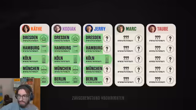 02:13:49Während des Drunkstreams spielt der Streamer Geogaster und kommentiert seine Leistungen und die seines Gegenspielers, Tim, ausführlich. Er zeigt sich anfangs stolz auf seine geografischen Kenntnisse, macht aber auch Fehler und versucht durch alkoholisierte Guesses das Spiel zu meistern. Der Stream wechselt zwischen dem Trinken und dem Spielen, was zu einer lockeren, aber auch frustrierenden Atmosphäre führt.