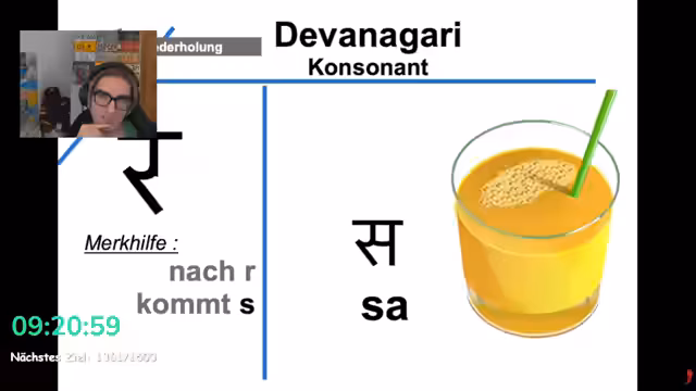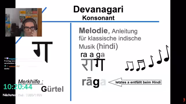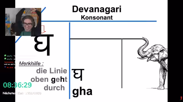 02:06:26Der Streamer beginnt, sich in die Devanagari-Schrift einzuarbeiten, indem er die Struktur der Buchstaben erklärt. Er empfiehlt, zuerst die Konsonanten zu lernen, gefolgt von den wichtigsten zehn Vokalarten, um Lesen zu können. Er stellt fest, dass die Schrift für Hindi, Sanskrit und Nepali verwendet wird und dass Kenntnisse in Devanagari das Erlernen von Bengalisch erleichtern. Anhand von Merkhilfen wie einem 'Schal' und einem 'Wasserhahn' werden Buchstaben wie 'A' und 'N' visualisiert, um das Einprägen zu vereinfachen.