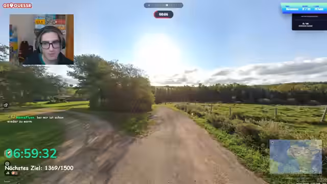 06:20:05Ein intensiver Geoguessr-Modus beginnt, in dem der Streamer versucht, aus den größten Lobbys das richtige Land zu erraten. Er gerät jedoch schnell in Schwierigkeiten, da das Spiel stark laggt und nicht zurechtkommt. Das Rundenformat wird mehrmals unterbrochen, da die Lobby stürzt. Der Streamer muss die Teilnehmer auffordern, die Seite neu zu laden, um an einem alternativen Ort weitermachen zu können. Aufgrund der technischen Probleme fühlt sich der Streamer frustriert und bezeichnet die Situation als 'Totara Hills' und 'Katastrophe'.