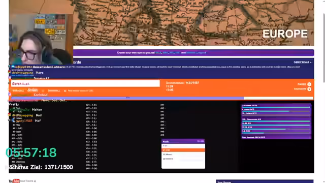 08:31:56Ein neues Quiz konzentrierte sich auf die häufigsten Wörter in deutschen Städte- und Gemeindenamen. Der Streamer versuchte, Wörter wie "Bad", "Burg" und "Berg" einzugeben, die häufig vorkamen. Bei den kurzen Wörtern kam er schnell ins Stocken und überprüfte seine Eingaben, da nicht alle Begriffe als gültig anerkannt wurden. Er listete Wörter mit verschiedenen Buchstabenzahlen und Prüpositionen auf und diskutierte, welche Begriffe er bereits gefunden hatte und welche noch fehlten. Die Aufgabe als anstrengend zu empfinden, begann, da er immer noch nach längeren Begriffen über zehn Buchstaben suchte.