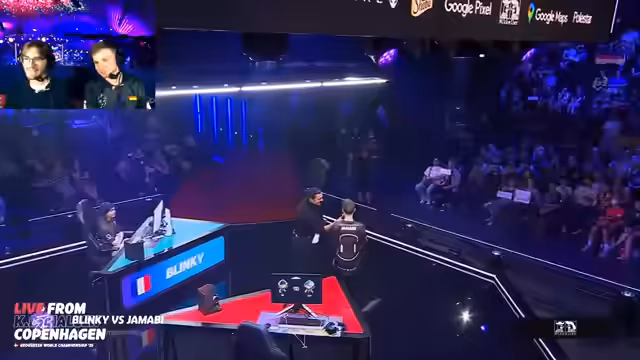 00:02:20Der LiveStream von Kodiak1777 für die Weltmeisterschaft in Dänemark beginnt mit leichten technischen Verzögerungen, aber der Kommentator ist hochmotiviert. Er befindet sich direkt in der Arena neben anderen Co-Streamern in verschiedenen Sprachen und stellt beeindruckt die Atmosphäre und das große Publikum in den Vordergrund. Das erste Spiel des Tages startet zwischen Radu und Zone, wobei Radu als Favorit gilt, während Zone als Wildcard-Aufsteiger gilt. Der Kommentator betont, dass im Knockout-Format jeder Spieler überraschen kann und ein Fehler das sofortige Aus bedeutet.