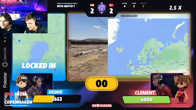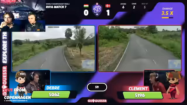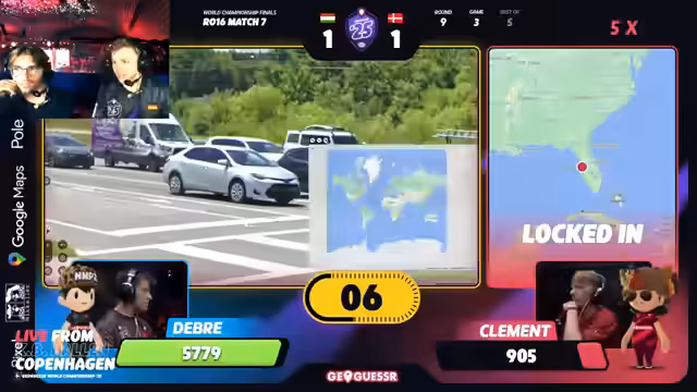 06:54:27Das Spiel geht ins Rundenlimit und ist mit Abstand das knappste bisher. Beide Spieler sind am Limit, Clement führt zunächst, Debra kann aber aufholen. Eine Runde in Italien wird als entscheidend gesehen. Clement nutzt seine Kenntnisse über die Fensterläden (Shutters) als Metaindikator für Norditalien und gewinnt die Runde mit einem großen Vorsprung. Das Match wird als absoluter „Banger“ und „Cinema“ bewertet, das Niveau beider Spieler sei mindestens Halbfinalniveau.