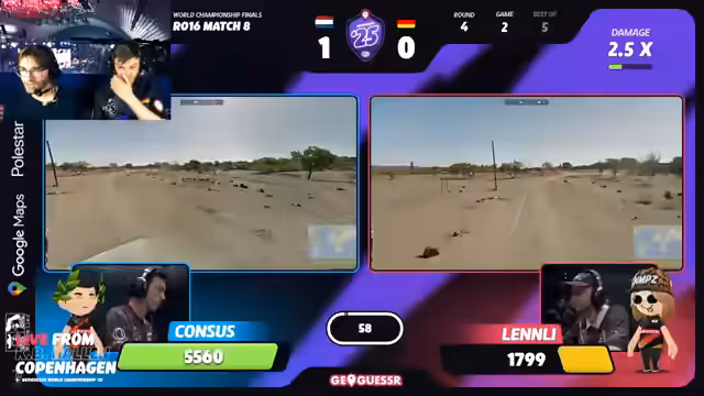 07:45:49Der Wechsel in den 'No-Move-Modus' bringt eine weitere Wendung in das Spiel. Lendly muss eine komplexe malaysische Location identifizieren, was ihm nur unvollständig gelingt. Concessus hingegen nutzt seine Präzision, um schnell und genau die richtige Region in Lettland zu finden. Er erkennt anhand von Straßenschildern den Ort 'Jelgava', was ihm einen klaren Vorteil verschafft. Kommentatoren und Crowd zeigen sich beeindruckt von der präzisen Analyse Concessus' und sehen die Entscheidung über das Spiel nun endgültig bei ihm.