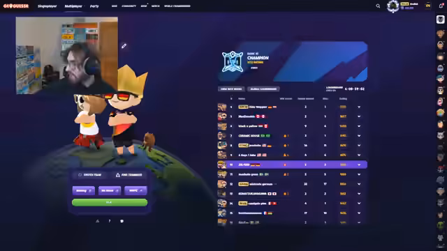 03:04:19Nach mehreren Runden der Geoguessr-Varianten entscheidet sich der Streamer für einen Wechsel zum Ranked-Modus des Spiels. Er beginnt damit, sein Elo-Rating zu verbessern, erleidet aber eine Niederlage, bei der er 25 Punkte durch einen Fehler verlor. Wütend über den Verlust, erwähnt er ein auf dem deutschen Discord angekündigtes Turnier, bei dem jeder Teilnehmer mitmachen kann. Er fordert seine Zuschauer auf, den Discord zu besuchen und sich zu registrieren.