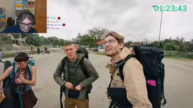 02:43:27Nach einem erfolgreichen Trampen nach Laobao, dem Grenzort nach Laos, wird das Team vom Glück begleitet. Ein netter Fahrer nimmt sie für 500.000 Dong mit und begleitet sie bis zur Grenze. Dort angekommen, sind alle erleichtert und überglücklich, die anstrengende Reise hinter sich zu haben. Die vier Reisenden, bestehend aus dem Streamer und den irischen Mädels, freut sich über die Gastfreundschaft des Fahrers, der ihnen sogar einen Kaffee mitgebracht hat. Die Stimmung ist ausgelassen und positiv, da sie einen wichtigen Meilenstein erreicht haben.