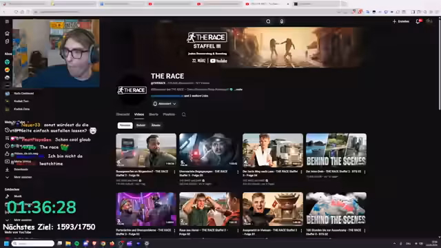 01:59:03Nachdem alle technischen Vorbereitungen getroffen waren und der Streamer seine Haare gerichtet hatte, begann der Hauptteil der Sendung: die Live-Reaktion zur Folge 6 von 'The Race'. Er kündigte an, während der Reaction versuchen zu, auf Chat-Fragen zu antworten, und erwähnte, dass diese im Anschluss an die Show vertieft werden könnten. Er betonte, dass er den Stream auch für YouTube aufzeichnen werde, um die Reichweite zu maximieren und seinen Followern auf beiden Plattformen eine Teil zu ermöglichen.