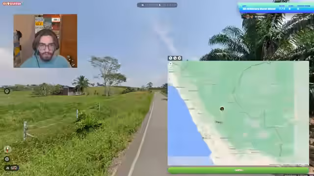 01:44:44Nach intensivem Russland-Gameplay wechselt der Streamer zur Abwechslung in den Arbiträr-Modus mit Weltkarten. Er spielt Länder wie Polen, Argentinien und Namibia, analysiert Baumsorten, Straßentypen und Regionen. Dabei diskutiert er seine Guesses (z.B. Chile statt Argentinien), reflektiert über typische Fehler wie Rumänien-Russland-Verwechslungen und interagiert mit dem Chat bezüglich Clip-Vorschlägen für Social Media, während er strategisch Straßen und Landschaften bewertet.