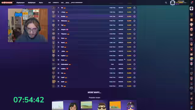 09:36:32Der Streamer überlegte, welche Spielmodi er als Nächstes spielen sollte, da sein Kopf nicht für Ranked-Spiele bereit war. Er schlug verschiedene Optionen vor, darunter Speedruns, 2v2s mit der Community, Scribble, Gartikphone oder Mapmaking. Er erwähnte auch die Möglichkeit, US-Area-Codes zu lernen oder Timeguesser zu spielen. Eine Umfrage wurde gestartet, um die Präferenzen der Zuschauer zu ermitteln. Die Community stimmte für 'Party', woraufhin der Streamer eine Lobby für NMPZ (No Moving, Pan, Zoom) Rural World erstellte und alle einlud, mitzumachen. Er setzte die maximale Rundenzeit auf 25 Sekunden und wartete auf weitere Teilnehmer. Während der ersten Runde in Omsk, Russland, kommentierte er die graue Bodenfarbe und die lustige Anordnung der Spieler. Eine weitere Runde führte nach Pretoria, Südafrika, die schnell gelöst wurde. Er entfernte inaktive Spieler und betonte, dass bei so vielen Teilnehmern nur schwierige Modi sinnvoll seien, um endlose Runden zu vermeiden. Er schlug auch Live-Challenges vor, falls die Community dies wünschte. Er startete eine weitere Runde in Rural World und kommentierte die Schwierigkeit der Runde, die sich als Spanien herausstellte, obwohl er zunächst Frankreich oder Portugal vermutet hatte. Eine Runde in Kenia wurde erfolgreich identifiziert, gefolgt von Niswa. Eine amazonische Runde in Brasilien, die sich als Mato Grosso herausstellte, wurde ebenfalls gespielt. Eine schwierige Runde in Rumänien wurde korrekt identifiziert. Eine weitere Runde in Oman wurde erfolgreich gelöst. Eine Runde in Russland, die zunächst als Argentinien vermutet wurde, wurde schließlich als Russland identifiziert. Der Streamer schlug vor, Live-Challenges auszuprobieren, mit 10 Runden und 20 Sekunden pro Runde.