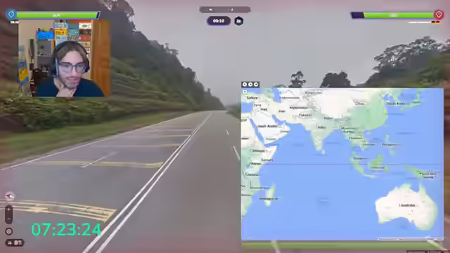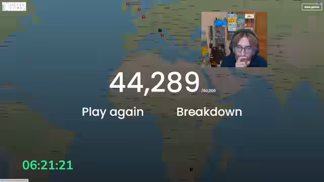 00:21:03Es wird über die beeindruckenden GeoGuessr-Leistungen von Blinky gesprochen, insbesondere seine schnellen 100k-Runs. Der Streamer reflektiert über seine eigene beste Zeit auf 25k und schätzt ein, dass er sich verbessert hat und wahrscheinlich eine Sub-3-Minuten-Zeit erreichen könnte, wenn er es ernsthaft versuchen würde. Nach einer kurzen Pause, in der er Tee trinkt und hofft, dass die Zuschauer gut geschlafen haben, beginnt eine Serie von GeoGuessr-Runden. Die erste Runde führt nach Norwegen, gefolgt von Thailand, Russland, Griechenland, Taiwan, Kolumbien, Slowenien und weiteren Ländern. Während der Runden kommt es zu Diskussionen über spezifische geografische Merkmale, Area Codes und die Schwierigkeit, bestimmte Orte zu identifizieren. Ein Genre-Wechsel für die Musik wird angeboten, wobei Techno-Remixe als Option genannt werden, während Metal als persönliche Qual abgelehnt wird.