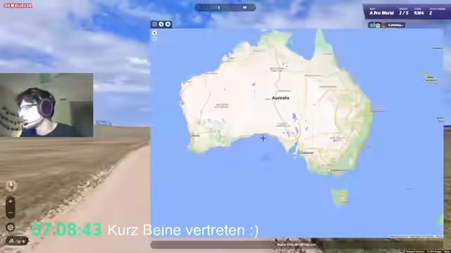 08:58:45Die Spieler setzen ihre Reise fort und landen in British Columbia (Kanada) oder möglicherweise in den USA, wo ein gestreiftes Auto und Montana-Nummernschilder Hinweise geben. Sie entscheiden sich für eine Strategie, bei der ein Spieler in Northern Montana bleibt, während der andere nach Wyoming Nationalparks wechselt. Danach geht es nach Brasilien, wo sie die Region Tocantins oder Goiás anhand von langen Gräsern und Canyons identifizieren. Eine weitere Runde in Australien führt sie nach New South Wales, wo die Landschaft und das Gras als Anhaltspunkte dienen. Trotz einiger knapper Runden und eines Freeze-Screens bleibt das Team motiviert und plant, beim nächsten Mal die 1600er-Marke zu knacken.