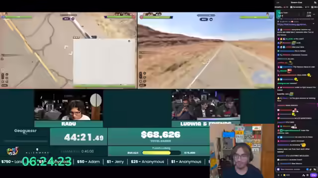 12:24:04Während des Events kommt es zu technischen Problemen, der Stream hängt und fällt schließlich aus. Die Zuschauer reagieren mit Frustration, da das Event unterbrochen wird. Der Streamer vermutet, dass die Probleme auf Seiten der Event-Veranstalter liegen, die über mehrere Tage streamen und eine hohe Zuschauerzahl haben. Er nutzt die Zwangspause, um sich etwas zu trinken zu holen und überlegt, welche Videoinhalte er für den nächsten Tag vorbereiten kann. Es wird erwähnt, dass Team Duels mit Snoopy eine gute Option wären. Nach einer Weile kehrt der Stream zurück, und das GeoGuessr-Duell wird fortgesetzt, wobei Radu weiterhin gegen mehrere Gegner antritt.