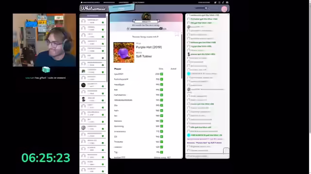 13:27:37Das GeoGuessr-Segment, das ursprünglich auf 15 Minuten angesetzt war, endet nach anderthalb Stunden. Trotz der Länge wird der Streamer von der Unterhaltung des Spiels begeistert. Nach dem Abschluss des GeoGuessr-Segments wird der erreichte Meilenstein von 300 Subs gefeiert, und es wird über das nächste Ziel von 310 Subs gesprochen, welches das Spielen von 'What's the Music' ermöglicht. Der Streamer zeigt seine vorbereiteten 'Logs' für GeoGuessr, die er als 'Banger' bezeichnet, und bedauert, dass er nicht sehen konnte, wie sie gespielt wurden. Er erklärt, dass er drei Typen von Logs erstellt hatte: solche, bei denen ein Spieler glänzen kann, solche, die schnell NMPZ (No Moving, Panning, Zooming) sind, und solche, die ein einfaches 5K sein sollten. Anschließend wird das Spiel 'What's the Music' eingeführt, bei dem Lieder erraten werden müssen. Als Kategorie wird ein Anfangsbuchstabe für die Songs festgelegt, und die erste Runde beginnt mit 'M'. Die Regeln beinhalten, nicht zu schummeln und Lieder auszuwählen, die mit dem vorgegebenen Buchstaben beginnen. Der Streamer wählt ebenfalls ein Lied mit 'M' aus und startet das Spiel. Es werden weitere Runden mit verschiedenen Anfangsbuchstaben gespielt, darunter 'P', und es wird eine Kategorie 'On Repeat' vorgeschlagen, bei der die Teilnehmer ihre aktuell meistgehörten Lieder einreichen sollen.
