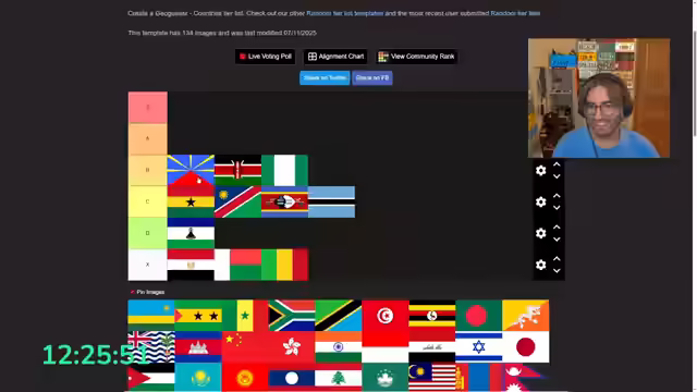 05:15:15Nachdem der Stream über 200 Abonnenten erreicht hat, beginnt der Streamer mit der Erstellung einer GeoGuessr Moving Länder Tierlist. Er sucht nach einem geeigneten Tierlist Maker für GeoGuessr-Länder und findet eine Liste, die auch Namibia und Vietnam enthält. Der Streamer plant, die Länder danach zu bewerten, wie viel Spaß es macht, sie im Moving-Modus zu spielen, und wie viele lernbare Informationen sie bieten. Er lädt Dani, einen "Moving Goat" aus Österreich, ein, um an der Diskussion teilzunehmen und seine "Hot Takes" einzubringen. Dani, der sich als "Open Dummy" vorstellt und Moving-Experte ist, wird per Anruf zugeschaltet. Die beiden definieren die Bewertungskategorien (D bis S-Tier) und beginnen mit der chronologischen Bewertung der Länder. Botswana wird als C-Tier eingestuft, da es zwar grundlegende Informationen bietet, aber wenig Spaß macht und die Info als "wack" empfunden wird. Esfatini wird ebenfalls als C-Tier, aber über Botswana, bewertet, da es hügeliger ist und mehr Spaß macht. Ghana wird als CD-Tier eingestuft, da es ausreichend Informationen bietet, aber immer noch unter dem B-Tier liegt. Kenia wird als Low-B-Tier bewertet, da es super Informationen zum Lernen bietet, aber der Pinpoint aufgrund des schlechten Mappings schwierig ist. Lesotho wird als D-Tier eingestuft, da die Informationen oft unzuverlässig sind und die Straßen noch kleiner als in Botswana. Namibia wird als ähnliches Level wie Ghana bewertet, da es zwar gute Beschilderung hat, aber oft Coverage Ends aufweist. Nigeria wird als B-Tier eingestuft, da es Spaß macht, Informationen zu finden, obwohl die Straßen oft falsch kartiert sind und die Kameraqualität schlecht ist.