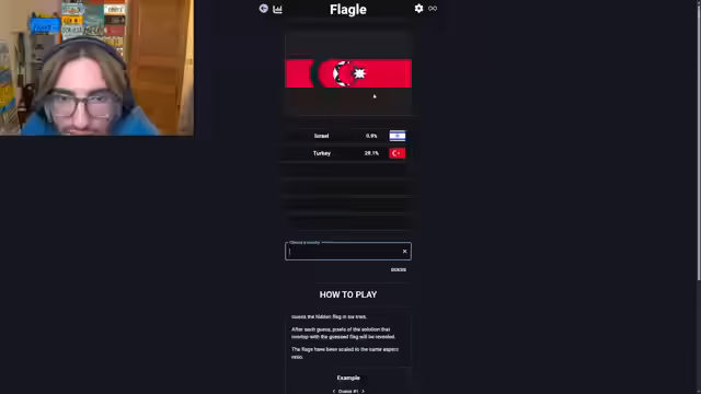 01:06:46Der Streamer beginnt eine Runde Flaggen-Raten, wobei Israel als nächstes Land gewünscht wurde. Er betont, dass er solche Themen normalerweise meidet, es aber im Kern ein Flaggen-Spiel ist. Beim ersten Versuch tippt er auf die Türkei, basierend auf einem weißen Halbmond und Stern, was sich als 28% richtig herausstellt. Nach anfänglicher Verwirrung über die Flagge und der Überlegung verschiedener Länder wie Äthiopien, Tunesien, Algerien oder Marokko, entscheidet er sich schließlich für Aserbaidschan. Trotz eigener Unsicherheit und der Feststellung, dass die Runde eine 'Katastrophe' war, löst er die Flagge korrekt. Er merkt an, dass das Spiel im Live-Stream tausendmal schwieriger ist als offline.