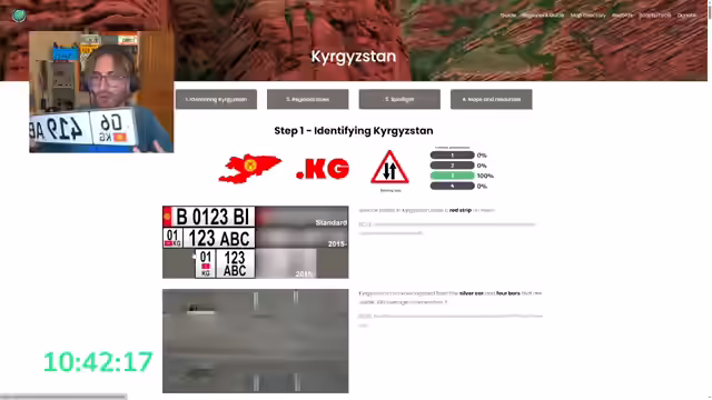 01:23:54Der Streamer kündigt an, Kirgisistan auswendig zu lernen, da dies eine 'Subgoal-Bestrafung' ist. Er plant, dies als Video für YouTube aufzunehmen und beginnt mit einer Analyse des Plunkett-Guides. Er studiert Nummernschilder, regionale Abdeckung, Fahrtrichtungen und spezifische Merkmale wie den 'Car Mirror Matter'-Hinweis für nördlich von Jalalabad und den schwarzen Punkt auf dem Spiegel für bestimmte Regionen. Er notiert sich weitere Tipps zu geteilten Straßen, Downtown-Bereichen, Schneebedeckung in Südost-Bischkek und Smog im Norden. Er identifiziert auch spezifische Merkmale von Städten wie Osh, Jalalabad, Talas und Karakol, sowie die EM40- und EM11-Straßen mit ihren Besonderheiten wie rostigen Strommasten oder schlechtem Straßenbelag im Süden.