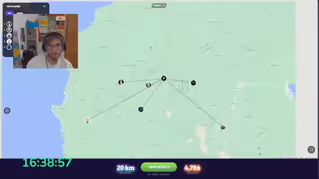 00:15:50Es wird eine Baitmap-Session gestartet, bei der NMPZ (No Moving, Panoramas, Zooming) und No-Car-Challenges gespielt werden. Der Streamer zeigt einige Logs aus dem letzten Video und plant eine Map mit NMPZ-Shit-Gamebaits. Er erwähnt, dass die Coverage für Shitcam-Aufnahmen begrenzt ist. Während der Session meldet er sich auch noch schnell für die Geobundesliga an. Parallel dazu nimmt er an der Weekly Indochallenge von Indochord teil, einem Accuracy-Test, bei dem man sich mit anderen messen kann. Er spielt zunächst die Seeds aus der letzten Woche, um sich wieder einzugewöhnen. Dabei analysiert er die Logs anderer Spieler und versucht, deren Entscheidungen nachzuvollziehen. Er erklärt, dass alles, was in einer Karte landet, offizielle Coverage ist. Er spielt verschiedene No-Move-Runden mit 30 Sekunden Bedenkzeit und versucht, die Regionen anhand von Hinweisen wie Vegetation und Poles zu erraten. Dabei gibt es auch einige Fehleinschätzungen, die er aber sportlich nimmt. Er bedankt sich für die Gifted Subs und stellt fest, dass die EFTs (vermutlich eine Anspielung auf Twitch-Aktionen) laufen.