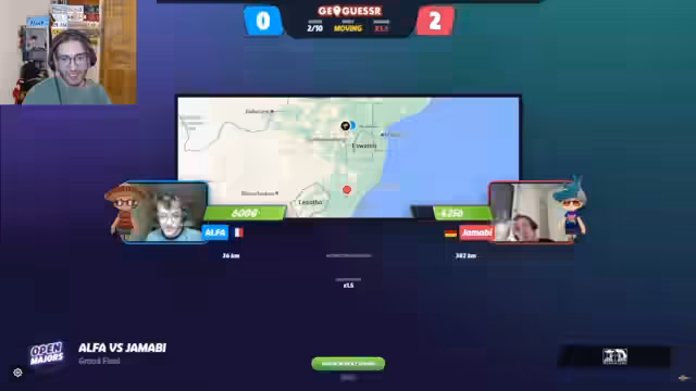06:00:13Das Finale zwischen Jamabi und Luminous Kiwi beginnt mit abwechselnden Runden und knappen Guesses. Jamabi startet stark und erzielt in den ersten Runden Schaden, während Kiwi in Moving-Runden überzeugt. Die Spannung steigt, als Jamabi nach anfänglichem Rückstand durch einen exzellanten Guess in den USA das Spiel wieder ausgleicht. Die Kommentatoren sind begeistert von Jamabis Comeback und betonen seine Fähigkeit, unter Druck starke Leistungen zu erbringen. Das Finale bleibt bis zum Ende offen und hochspannend, wobei beide Spieler ihre Stärken in verschiedenen Spielmodi zeigen.