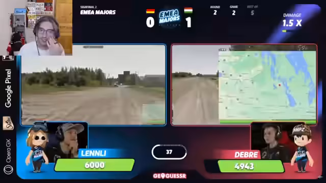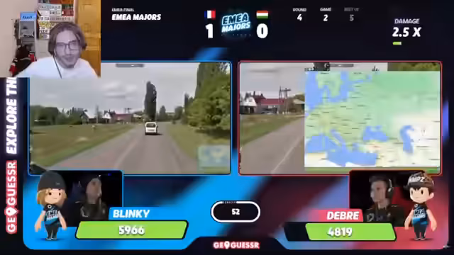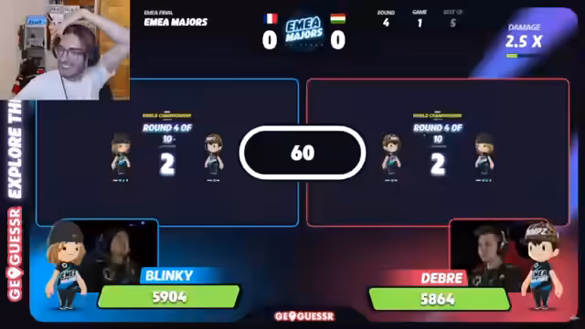 07:53:53Das Match endet 2:2 und geht in das finale No-Move-Pixel-Zoom (NMPZ)-Game. Die Runde gilt als extrem schwierig, da fast keine erkennbaren Merkmale vorhanden sind. Debra macht einen unglaublich wagemutigen Guess und tippt Kanada, während alle anderen Kommentatoren und der Gegner Blinky von anderen Ländern wie Mexiko oder Türkei ausgehen. Der Guess wird als korrekt anerkannt und Debra gewinnt das Finale und damit den gesamten EMEA-Titel.