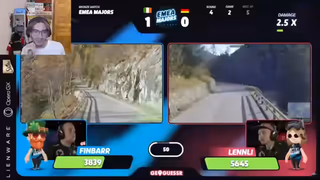 01:17:14Finbar führt 2-0 und zeigt eine beeindruckende Leistung. Marder gelingt in Runde 3 der entscheidende Guess mit 1000 Schadenspunkten, während Finbar in Neuseeland nach dem richtigen Bereich sucht. Nach der Runde in Kasachstan, wo beide Spieler Landstraßen erkennen, verliert Marder Zeit, da er die falsche Jahreszeit für die Kiefern erkannt hat. Finbar bleibt fehlerlos und baute seinen Vorsprung weiter aus.