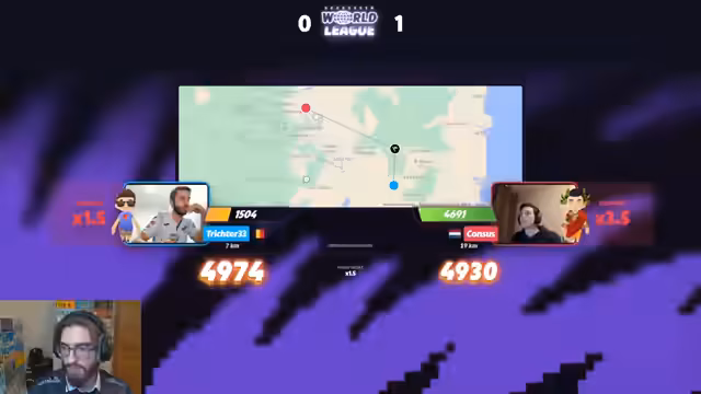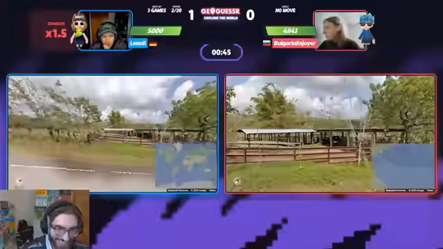 01:11:26Lenny startet das Match Bulgarian Joy gegenüber furios und zeigt eine beeindruckende Leistung. In fast jeder Runde, in der einer der Spieler eine nützliche Info findet, ist Lenny der schnellere und genauere Spieler. Er nutzt seine Geographiekenntnisse, insbesondere bei Runden in Kenia, Peru und Bolivien, um sich Multis zu sichern und dabei minimalen Schaden zu nehmen. Sein Spielstil ist entspannt und fehlerfrei, was ihm einen klaren Vorteil verschafft. Bulgarian Joy kämpft, kann jedoch kaum mithalten und wirkt überfordert mit dem Informationsvorteil von Lenny.
