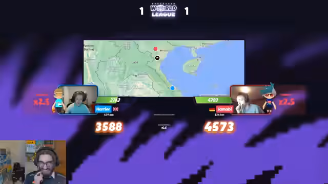 00:22:45Das erste Spiel zwischen Kratzu und Jamabi beginnt in Kenia und ist ausgeglichen. Jamabi, eher im No-Move zu Hause, muss im Moving gegen den leicht favorisierten Kratzu bestehen. Er zeigt eine beeindruckende Leistung mit sehr guten Guesses und Errors wie dem Commit in Sabah, Malaysia, das ihm einen entscheidenden Vorteil verschafft. Jamabi gewinnt das Match mit 2-0 und liefert dabei mehrere überzeugende 5K-Punkte und clevere Strategien.