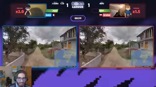 04:08:38Der Stream wechselt zu einem hochspannenden Match zwischen den Top-Spielern Noxy und Stefan. Beide gelten als weltbeste Spieler, wobei Noxy den Elo-Rekord hält und Stefan im letzten Jahr bei der Weltmeisterschaft den dritten Platz erreichte. Das Spiel ist von hoher Spannung geprägt, denn die Nerven sind angespannt und beide machen Fehler. Noxy agiert dabei unglücklich und verliert einige Runden knapp, obwohl seine Guesses oft richtig sind, aber nicht exakt genug, um als 'Game' zu gelten. Das Match wird als 'krass' und 'atemberaubend' beschrieben, trotz des Loser-Bracket-Status.