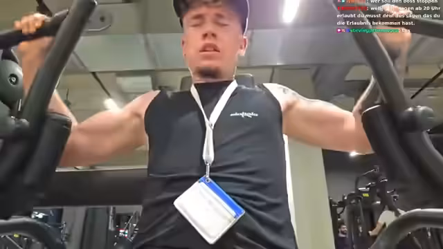 04:54:42Der Streamer äußert sich deutlich über die Anstrengung der Übungen, besonders bei 45 Kilogramm, was er als zu viel empfindet. Das Training wird jedoch vorzeitig abgebrochen, da er wegen des Livestreams das Haus verlassen muss. Es besteht Hausverbot, und das Filmen im Fitnessstudio ist nicht gestattet. Trotzdem möchte er seine letzte Übung, den Butterfly, zu Ende bringen, bevor er gehen muss.