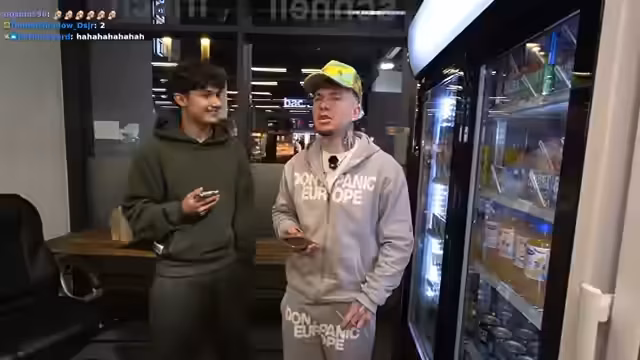 00:07:50Der Stream beginnt im MS Express Kiosk in Münster nahe dem Hauptbahnhof. Der Streamer ist mit einer Security-Personal namens Niklas ausgestattet, das für die Ordnung sorgen soll. Niklas stellt sich im Stream vor und erwähnt seine 62 Tattoos sowie seine ehemalige Dienstzeit bei der Bundeswehr, inklusive sechs Monaten in Afghanistan. Er erläutert seine Vorgehensweise bei potenziellen Konflikten, darunter den Einsatz von Griffen und einem Schlagstock. Auch seine ethnische Herkunft, halb deutsch und halb albanisch, wird im Chat thematisiert.