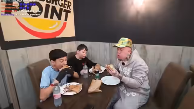02:15:58Nachdem Jonas die Challenge für sich entscheidet, verliert sein Gegner, Bau, anscheinend den Kollaps und muss sich übergeben. Der Streamer versucht, ihn zu motivieren. Aufgrund der negativen Erfahrungen mit der Challenge entscheidet sich Jonas spontan, einen spontanen Dönerwettessen zu organisieren. Zusammen mit der Kameracrew geht er aus dem Expressmarkt und macht sich auf den Weg zum Hamburger Point, einem nahegelegenen Dönerladen, um die Wettkämpfe fortzusetzen und sich neue Herausforderungen zu suchen.