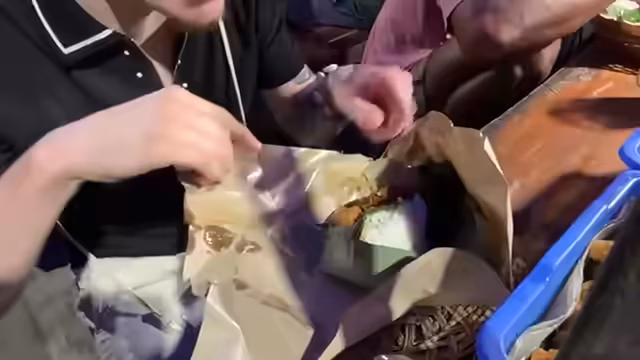 03:29:26Während des Essens unterhält sich der Streamer mit anderen Gästen. Eine deutsche Lehrerin erzählt von ihrem Aufenthalt in Bali und ihren Erfahrungen. Der Streamer probiert verschiedene lokale Gerichte und Kommentare den scharfen Geschmack einiger Speisen. Er zeigt sich begeistert von der Gastfreundschaft und der Möglichkeit, authentisches lokales Essen zu probieren. Er führt interessante Gespräche mit verschiedenen Besuchern und tauscht sich über kulturelle Unterschiede aus.