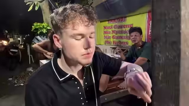 03:18:44Auf der Suche nach einem geeigneten Restaurant oder Essensort zeigt der Streamer verschiedene Optionen auf Bali. Er entscheidet sich für einen authentischen Ort, an dem lokale Spezialitäten wie Nasi Goreng und Tempeh serviert werden. Dabei erklärt er die Besonderheiten der Speisen und die Esskultur mit den Händen. Der Streamer zeigt sich beeindruckt von der Freundlichkeit der Menschen und der Atmosphäre am ausgewählten Ort.