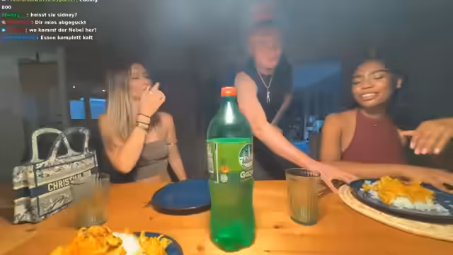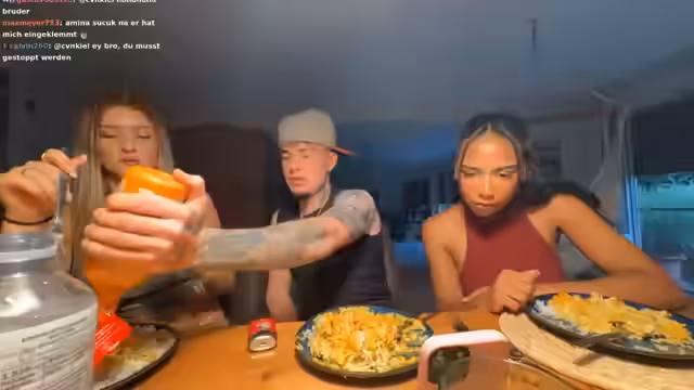 00:00:08Der Kochstream beginnt auf Twitch. Kony begrüßt seine Zuschauer und stellt die beiden Gäste Sydney und Paula vor, die aus Münster stammen. Er betont, dass die beiden normal Frauen sind und nichts mit Onlyfans zu tun haben, und fordert den Chat auf, mit Ws für die Frauen zu spammen. Streamer Kony äußert seine Freude, dass der Stream trotz anfänglicher technischer Probleme mit dem Internet starten konnte. Währenddessen interagiert er mit seinen Gästen, die sich entspannt und authentisch zeigen.