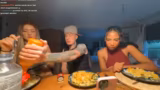 03:11:44Der Höhepunkt des Streams wird erreicht, als das Essen serviert wird. Der Streamer ruft seinen Vater an, der stolz auf die Kochleistung ist. Die Tischgemeinschaft, inklusive des Hundes Peter, ist ein zentrales Bild. Es gibt Interaktionen mit dem Chat, der das Essen lobt und der Streamer seine Dankbarkeit für die Unterstützung zeigt. Der Fokus liegt auf dem gemeinsamen Essen und der positiven, familiären Atmosphäre.