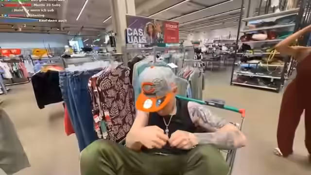 00:19:18Nachdem die Hauptzutaten besorgt sind, geht die Suche weiter nach Zusatzartikeln wie Ohrschmuck und Deko. Kony findet große Ohrringe und einen Ehering sehr interessant und probiert verschiedene Varianten aus. Während des Einkaufs muss Kony kurz den Stream verlassen, um auf die Toilette zu gehen. In seiner Abwesenheit führen Sydney und Paula das Gespräch mit dem Chat weiter und zeigen den bereits gefüllten Einkaufswagen.