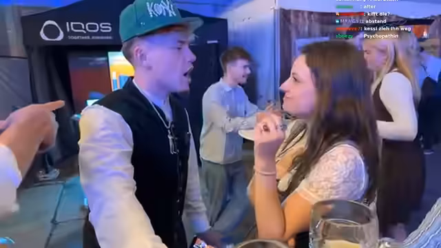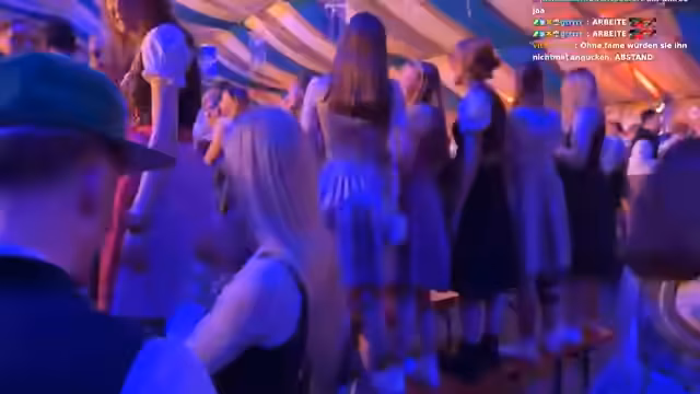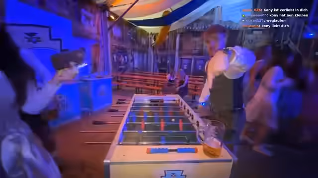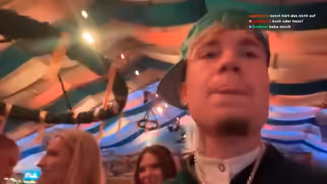 00:21:37Der Streamer beschreibt seine fortgesetzte Suche nach seinen Freunden, wobei er den Chat über seine aktuelle Situation informiert. Er filmt die volle Location und die Umgebungen und zeigt sein Outfit, das für das Oktoberfest typisch ist. Es kommt zu unzähligen kurzen, teils oberflächlichen Gesprächen mit Partygästen. Der Streamer versucht, Kontakt zu herumstehenden Frauen aufzunehmen, was teilweise erfolgreich ist, und ist dabei überwältigt von der Menge der Menschen und der lauten Musik.